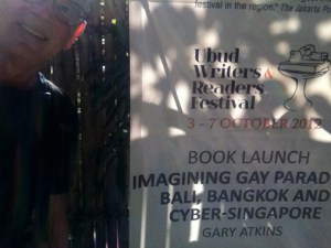 Thanks to everyone who came to the successful Bali launch of “Imagining Gay Paradise.” All the books I took in were so quickly claimed that we couldn’t even stock the Periplus outlet at the Writers and Readers Festival — which, by the way, was an amazingly extensive set of multi-day panels, special events, other launches and, of course, writers’ parties. The interest in one of the book’s main characters, Walter Spies, remains strong … as it does in the main theme of the book: the search for gay home.